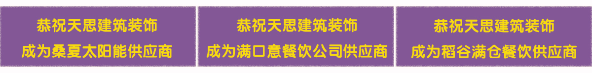 天思裝飾為您提供方便的一站式服務,不僅能夠提供設(shè)計與施工服務,還為您提供建材和家具。我們與眾多建材廠商、家具廠商有著密切合作關(guān)系,品類廣泛,物美價廉,滿足您的需求。
